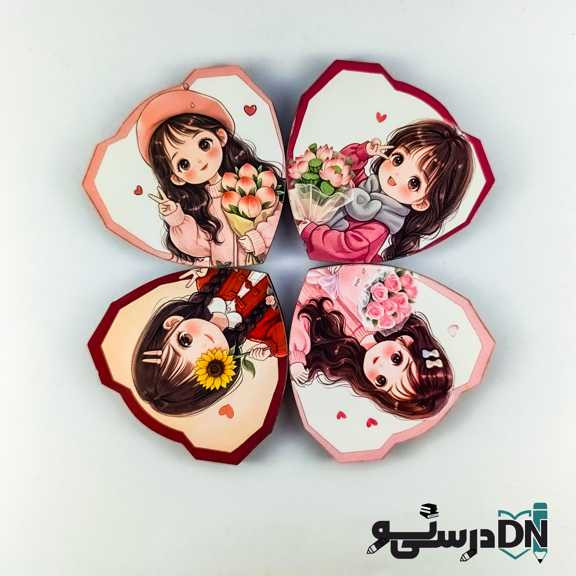 - طراحی قلبی با تصویرهای دخترانه و گلهای رنگارنگ
